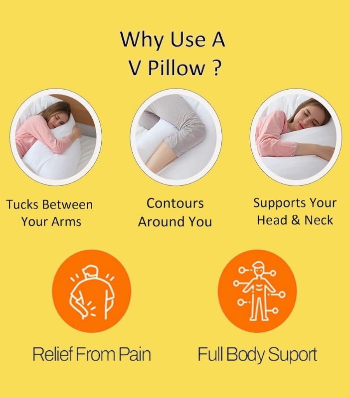 Multipurpose pillows for Fantastic Neck and Back Support. Orthopedic and Nursing Support Pillow. Use as you like Reading, Watching TV, a Sleeping Pillow, or just to relax. V shape gives orthopedic help around the back and sides of your neck. Ideal for pregnant ladies and incredible for nursing moms. If you are suffering from any allergy, then poly-cotton cover and generous amounts of hollow-fiber Non-Allergic v pillows are the perfect decision for comfortable sleep. High density down proof fabric to prevent fibber turning out.